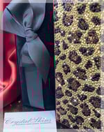 This case features a detailed leopard print design created with smoked topaz, jet and aurum (made with real gold) Swarovski crystals on a deep red wallet folio case.